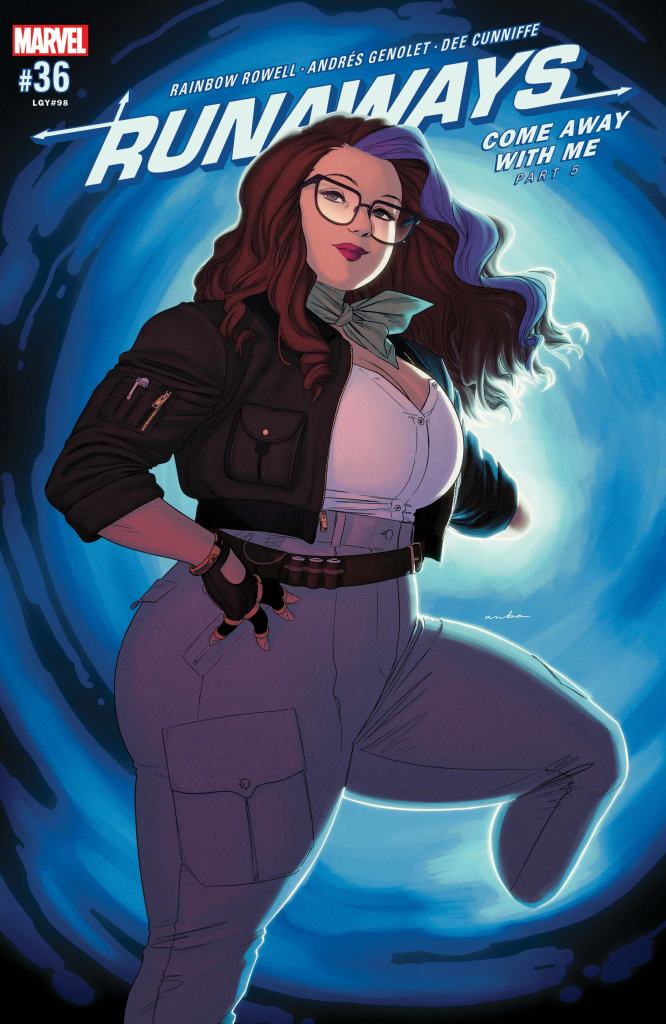 Gert was a fat girl whose story didn’t revolve around her losing weight, or taking up too much space, or losing out on romance because she had a belly and a butt. Instead, she got the handsome jock, who actually respected her and listened to her. She led her team. She had a dinosaur. I wanted to be Gert desperately. I even learned how to edit photos so I could edit myself into a “poster” for the Runaways movie that was being discussed. (Actually, I taught myself how to make full copy and wrote an entire teen magazine as though I was in this movie and also that I was dating Chris Evans. I am both ashamed and proud.) I stayed with the series until after Gert’s death, until the original creative team left. I never quite managed to get into Joss Whedon’s run and just kinda lost the series after that. But the most recent version of the title has gotten me back into it, and yes, I did tear up when I purchased Runaways #36, with an adult Gert who still looks like me on the cover.