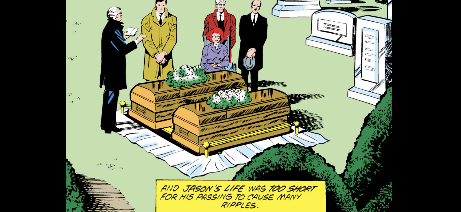 It wasn’t until a few years ago that I finally sat down and read and absorbed the four-part arc that started it all. Written by Jim Starlin, who also crafted The Infinity Saga for Marvel, it reads as a textbook example of comic authors pushing the boundaries of the Comic Code Authority at the time. Starlin’s work, A Death in the Family included, examines the causal relations between the actions of the characters and the consequences they suffer.
