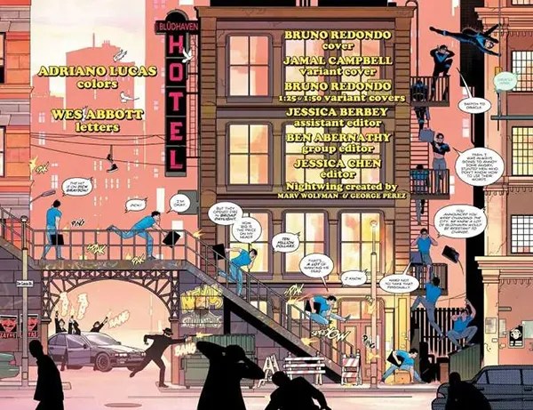 If you know me, it’s no surprise that Tom Taylor’s Nightwing makes an appearance on this list. While the title hasn’t been totally free of controversy, I’ve really enjoyed the life that Taylor and the creative team have brought to my circus boy. But Nightwing #87 doesn’t just rock my world from a writing standpoint. Instead, Taylor helps to highlight the incredible talents of artist Bruno Redondo, colorist Adriano Lucas, and letterer Wes Abbott, letting the intricate details of the artwork do the heavy lifting of the storytelling. The entire issue is one image, meaning if you’d lay each page down next to each other, it’s all one cohesive and fluid story panel. It’s comic artwork at its greatest, without the need for an intense arc to support it.